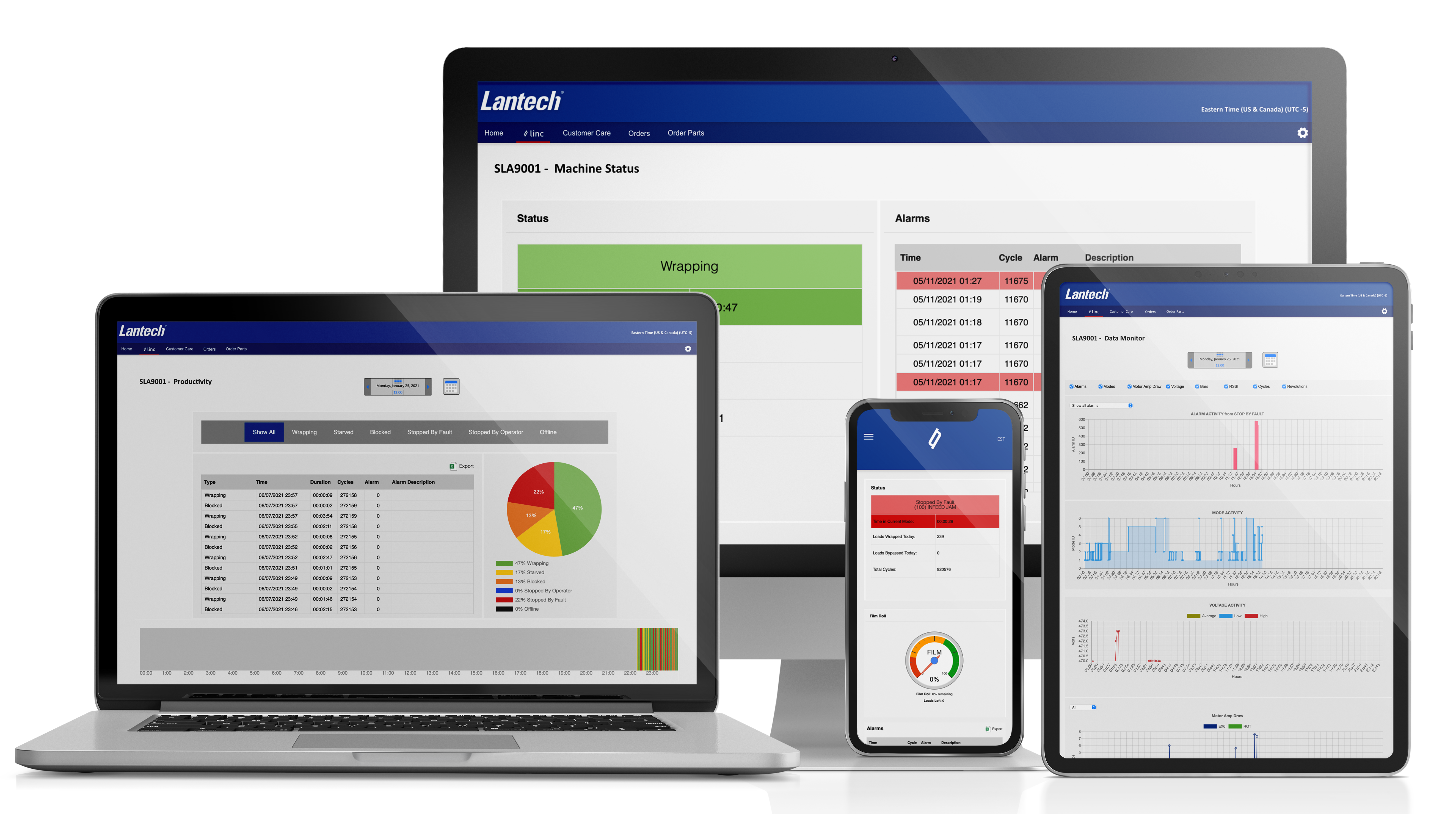 Our Remote Monitoring System is an integral part of Lantech’s commitment to react to issues before they become problems for our customers. Our Remote Monitoring System allows us to monitor Lantech machines in real time. Its primary goal is to provide actionable intelligence to support maintaining and improving system uptime, productivity, quality, and cost.